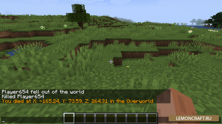 Мод на координаты места смерти Death Coords добавит в игру возможность видеть на экране смерти в чате, полные координаты места, где вы погибли в последний раз. В результате вы сможете обнаружить потерянные вещи без особого труда.